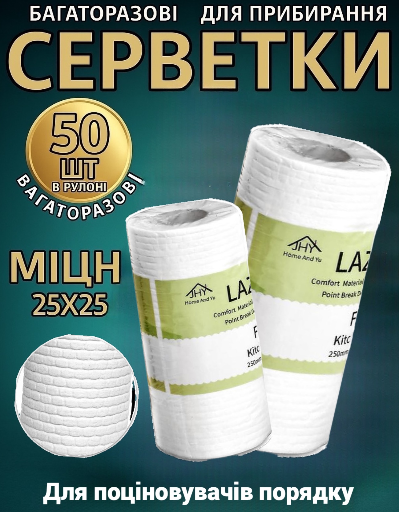 Багаторазові серветки з мікрофібри в рулоні  універсальні рушнички без ворсу легко очищають скло, дзеркала та поверхні без розводів, слідів та подряпин.